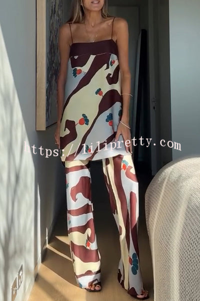 Loving Views Satin Unique Print a-line Tank and Elastic Waist Loose Pants Set