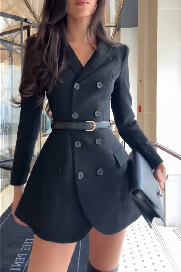 Parisian Style Double-breasted Long Sleeve Flare Hem Lapel Blazer Mini Dress