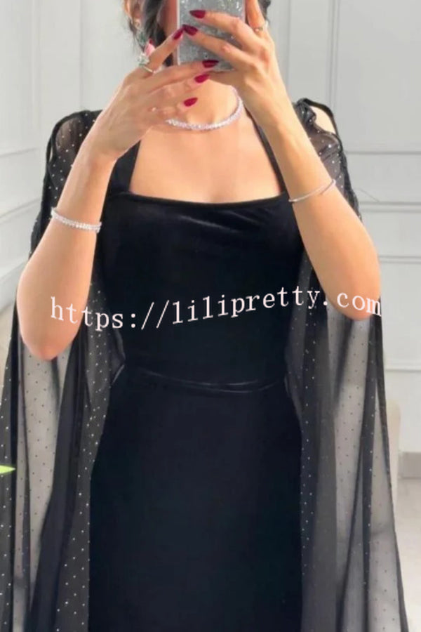 Solid Color Velvet Square Neck Slim Fit Rhinestone Maxi Dress