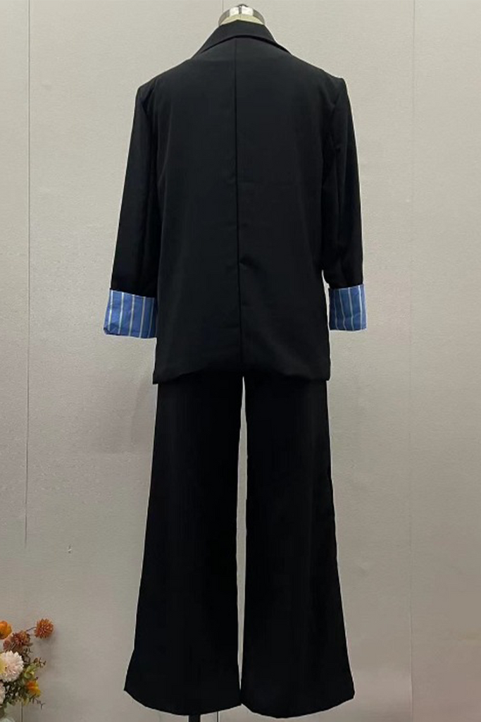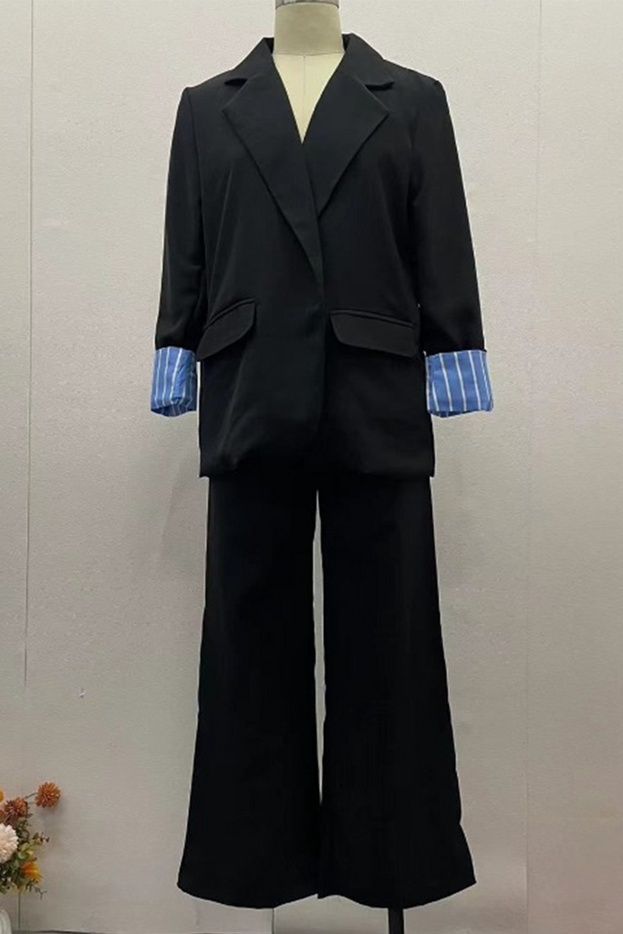 Casual Street Stripe Pocket Patchwork Turn-back Collar Long Sleeve Two Pieces