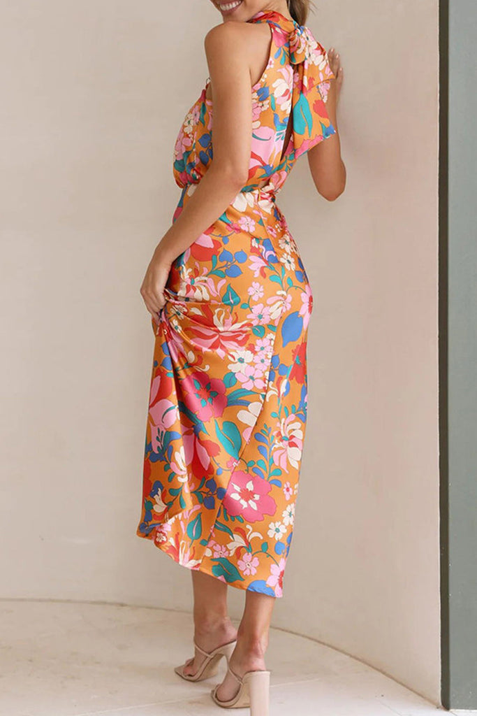 Celebrities Elegant Print Patchwork Asymmetrical Collar One Step Skirt Dresses