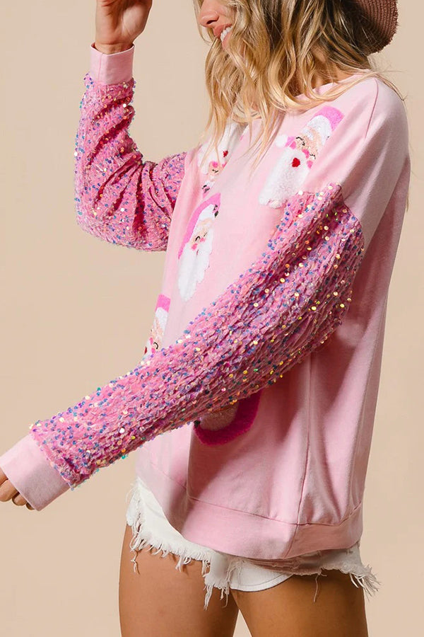 Christmas Casual Loose Round Neck Sequined Sleeve Sweatshirt