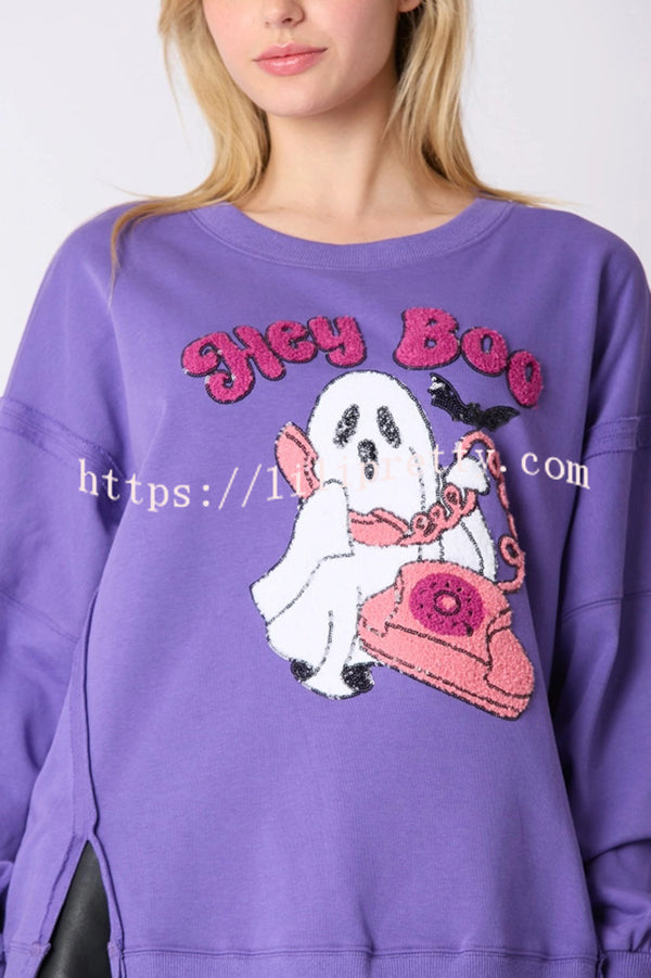 Halloween Cartoon Ghost Sequin Loose Casual Sweatshirt