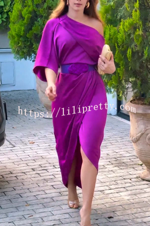 Whispered Yes Satin Irregular Lapel Neckline Design Ruched Maxi Dress