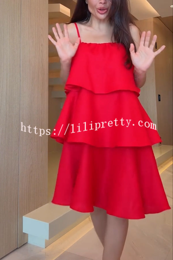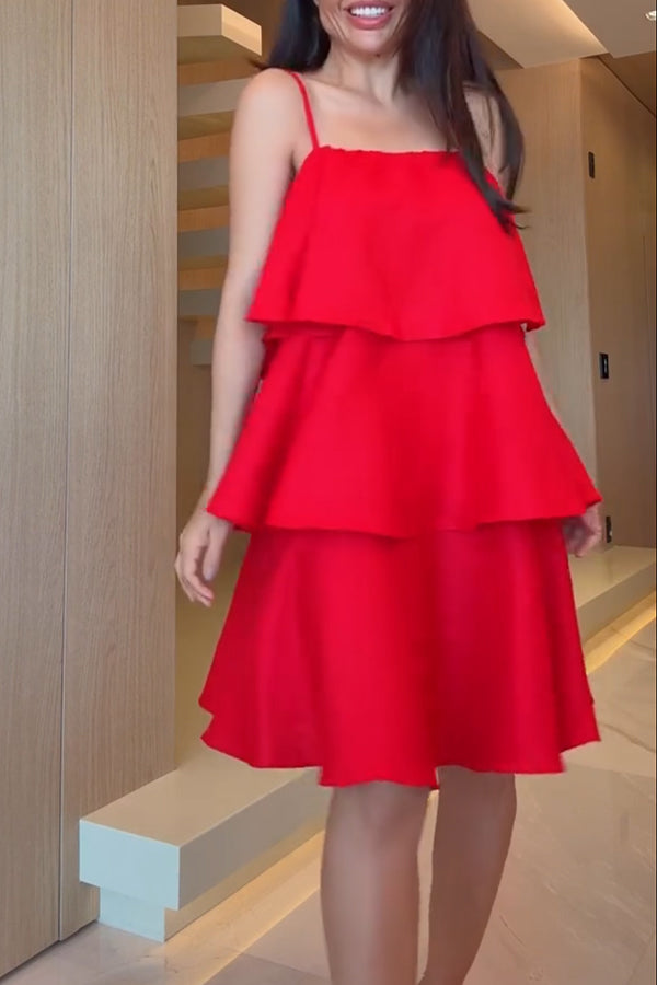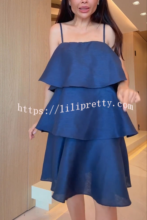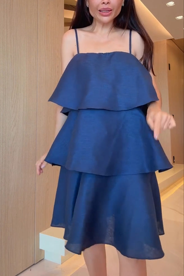 Sunlit Horizon Linen Blend Tiered Slip Square Neck A-line Mini Dress