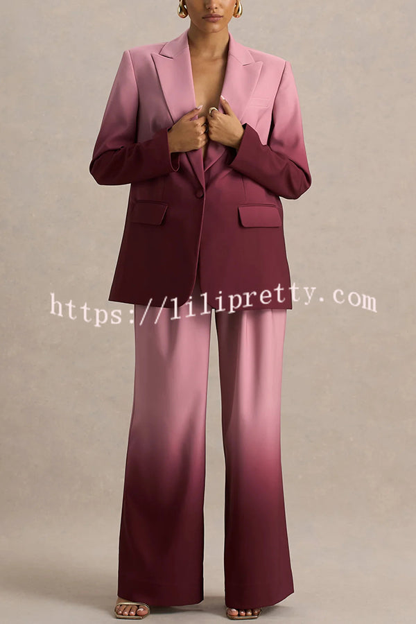 • Expertly tailored from ombré satin, these trousers are sure to turn heads wherever you go. The wide-leg silhouette features custom belt loops and a sleek zipper closure for a perfect fit. Pair them with one of our blazers for an even more captivating look.Our distinctive clothing will add instant style to your wardrobe.