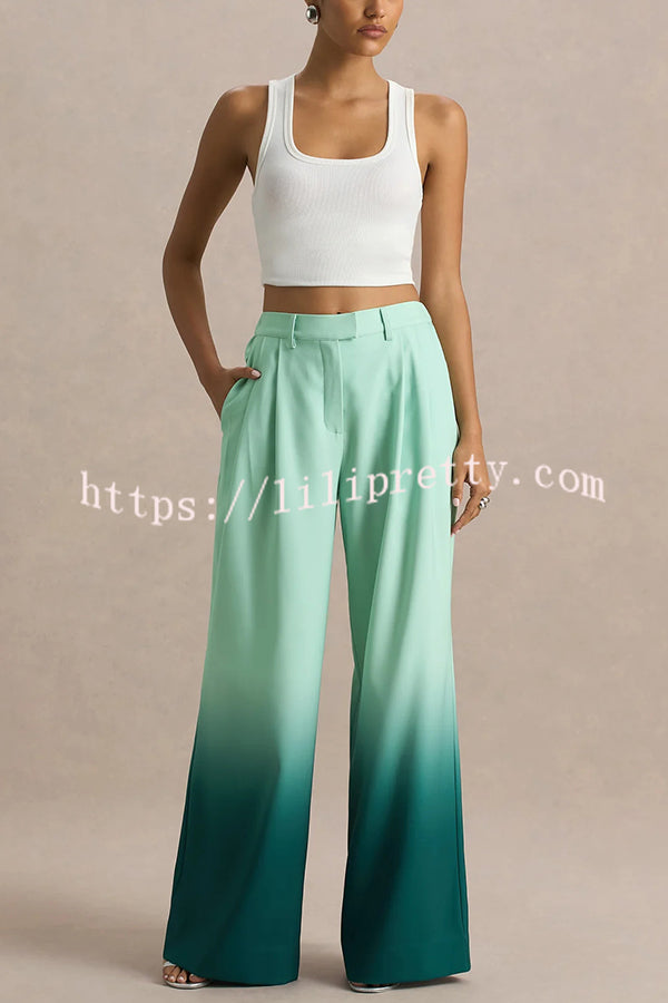 Enya Ombre Print Elastic Waist Pocketed Wide Leg Pants
