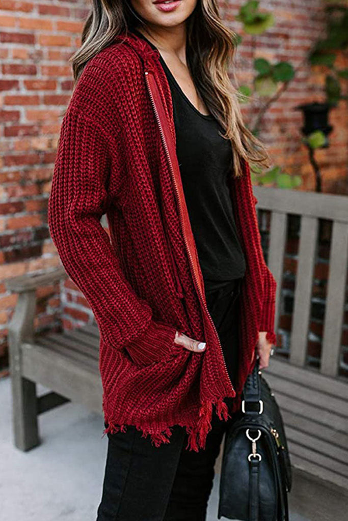 Fashion Casual Adult Solid Cardigan Hooded Collar Tops(6 Colors)