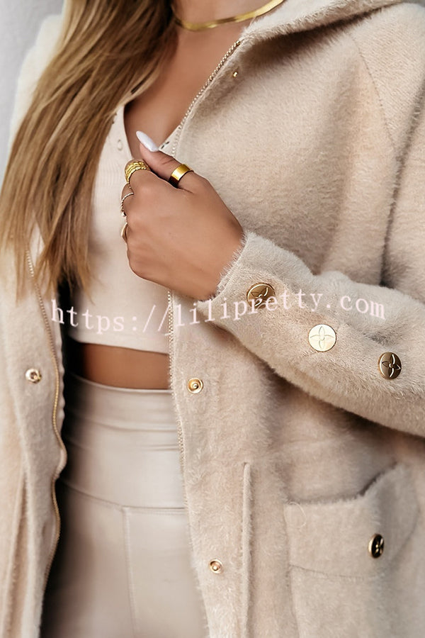 Fashion Drawstring Waistband Hooded Zipper Pocket Loose Coat