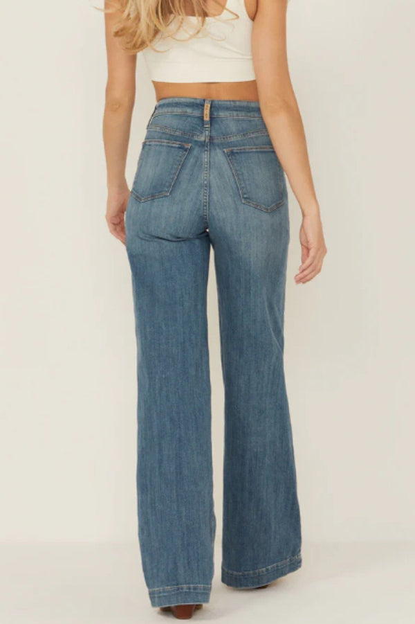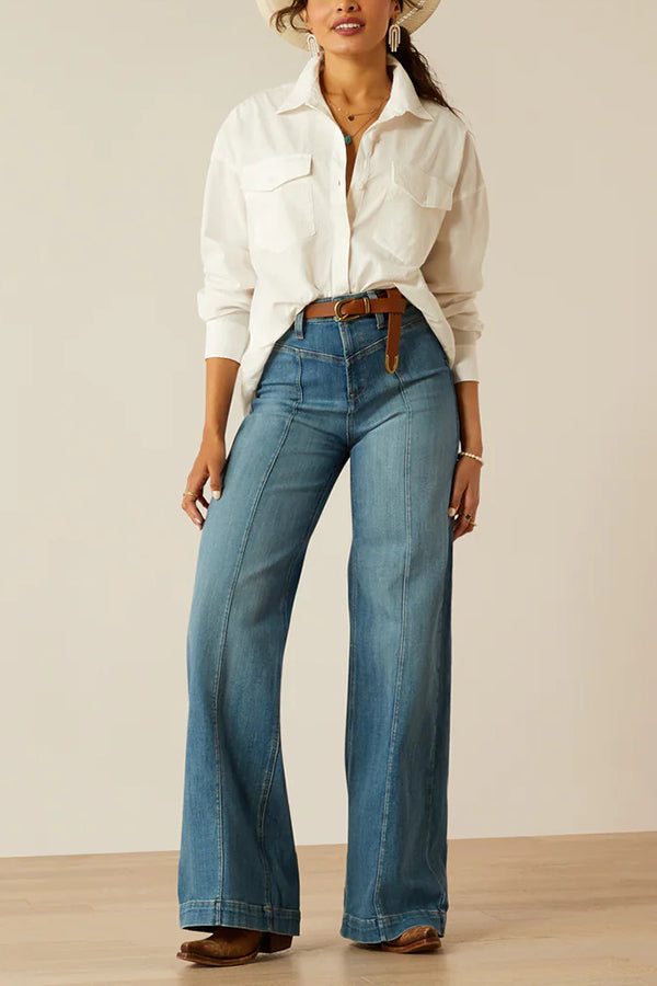 Fashion High Waist Casual Pocket Drape Stretch Straight Jeans