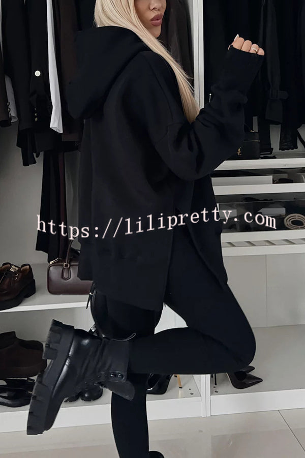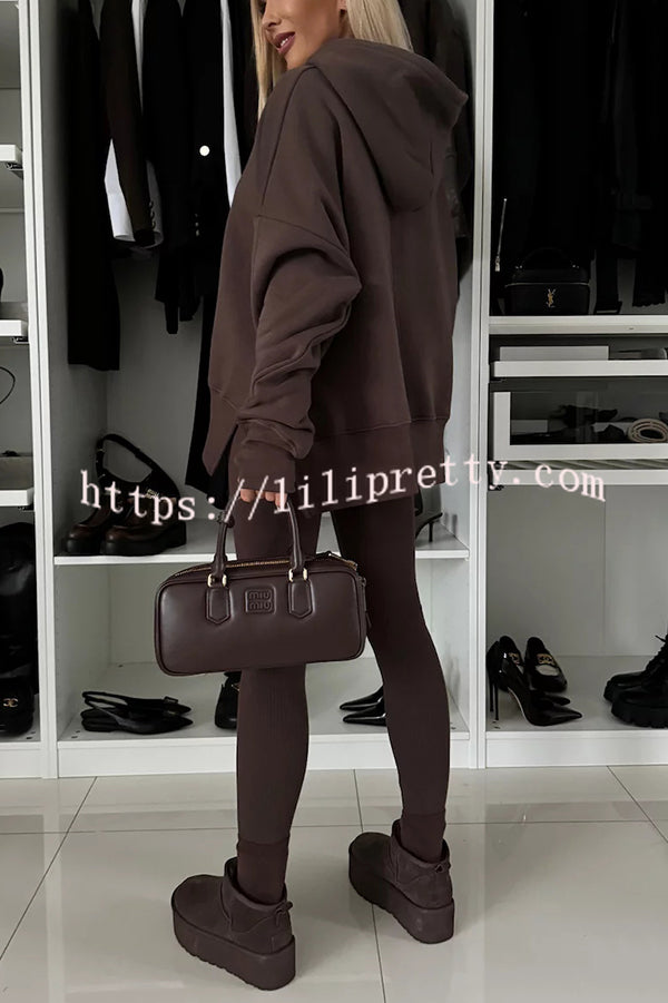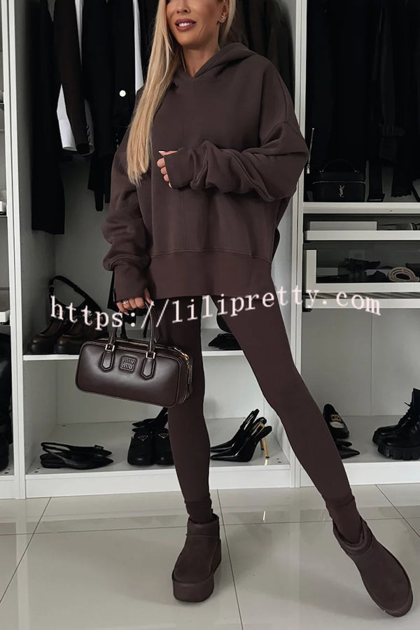 Fashion Loose Casual Hooded Long Sleeve Sweatshirt and Elastic Waist Leggings Set