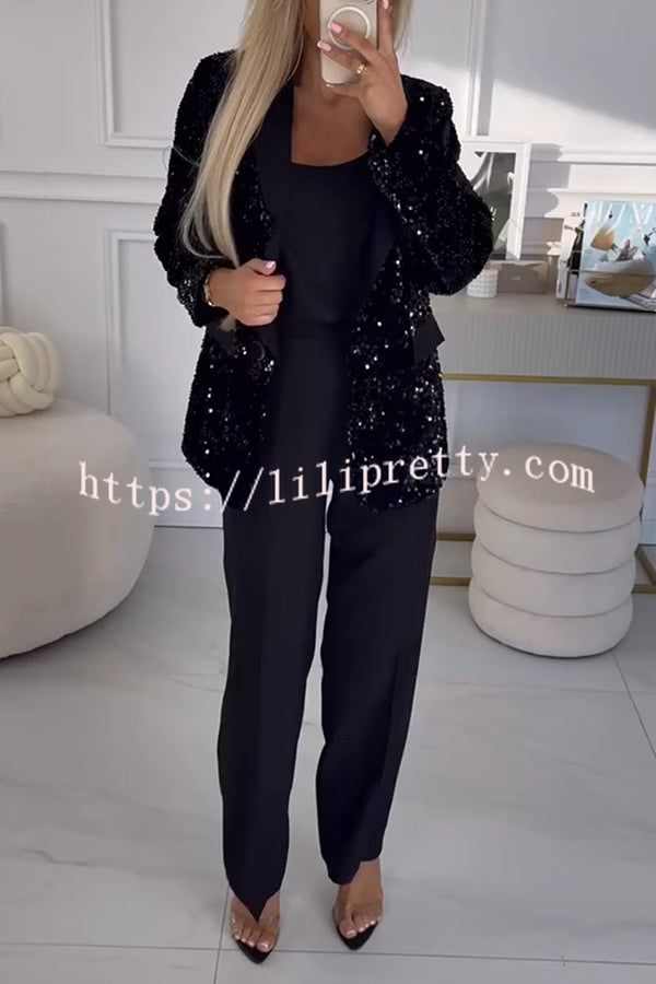 Fashion Sequin Lapel Long Sleeve Casual Blazer
