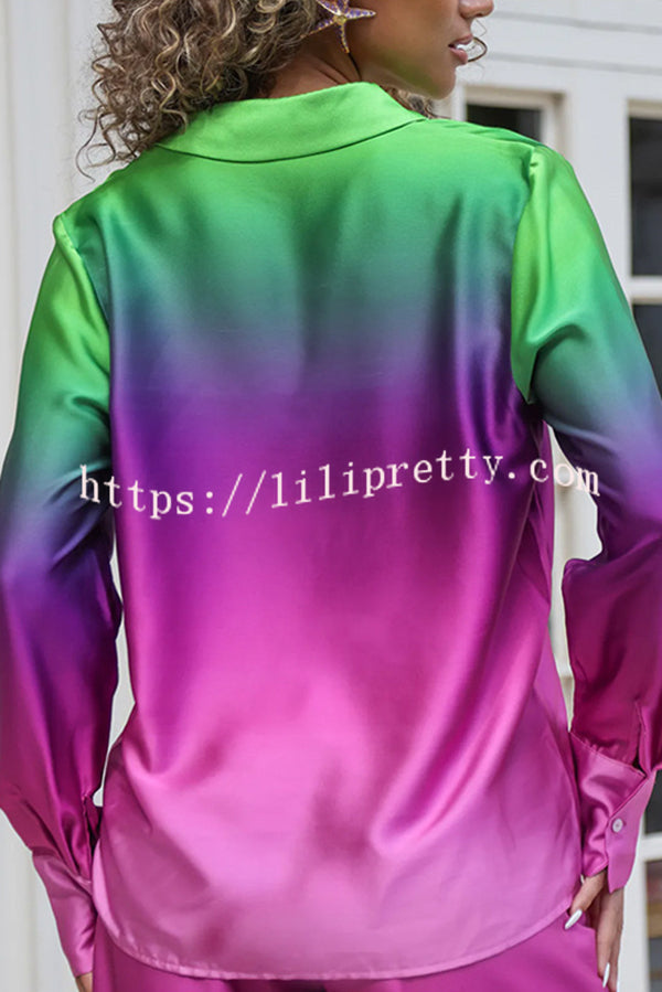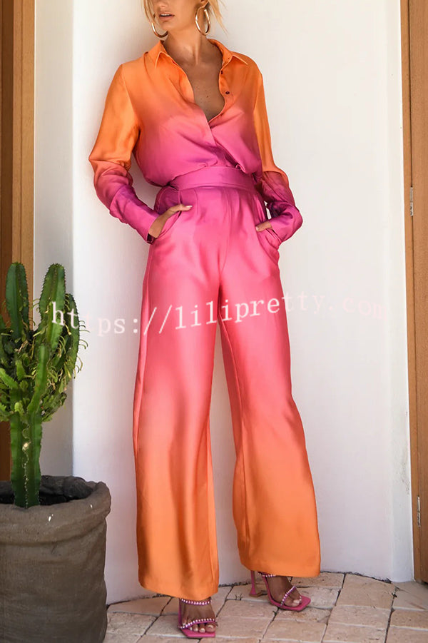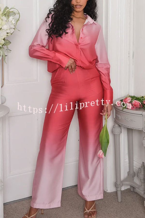 Gradient Long-sleeved Shirt Top and Loose-fitting Pocket Straight-leg Pants Set
