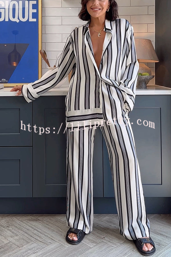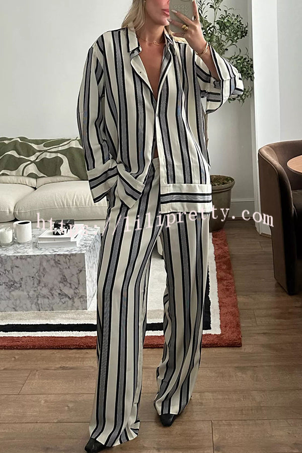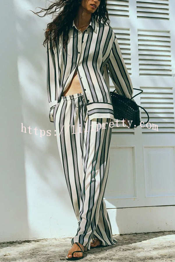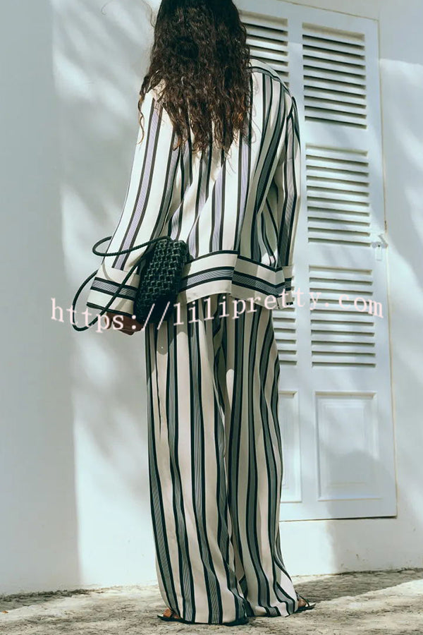 Lifetime of Happiness Striped Long Sleeve Loose Shirt and Elastic Waist Pocket Pants Set