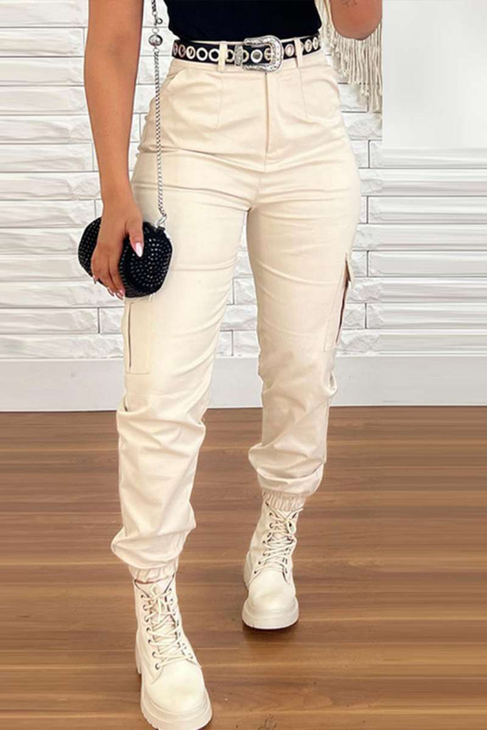 Casual Solid Patchwork Regular High Waist Conventional Solid Color Trousers (Without Belt)