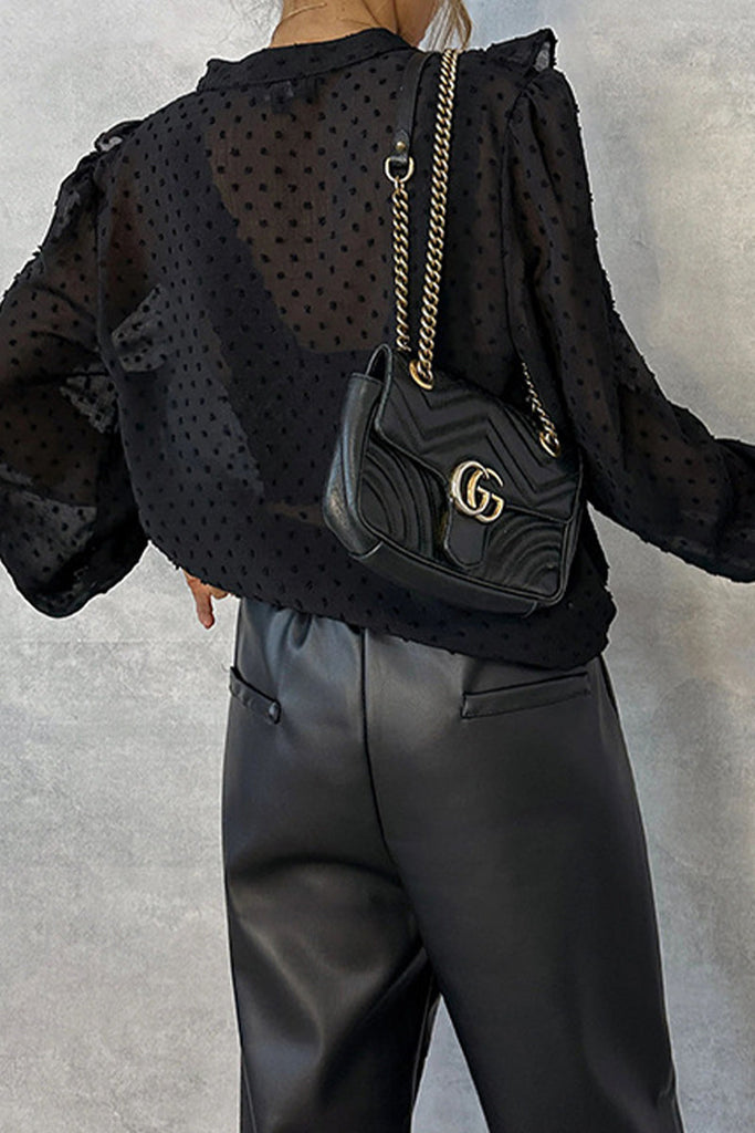Elegant Solid Buttons Flounce V Neck Tops
