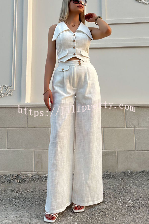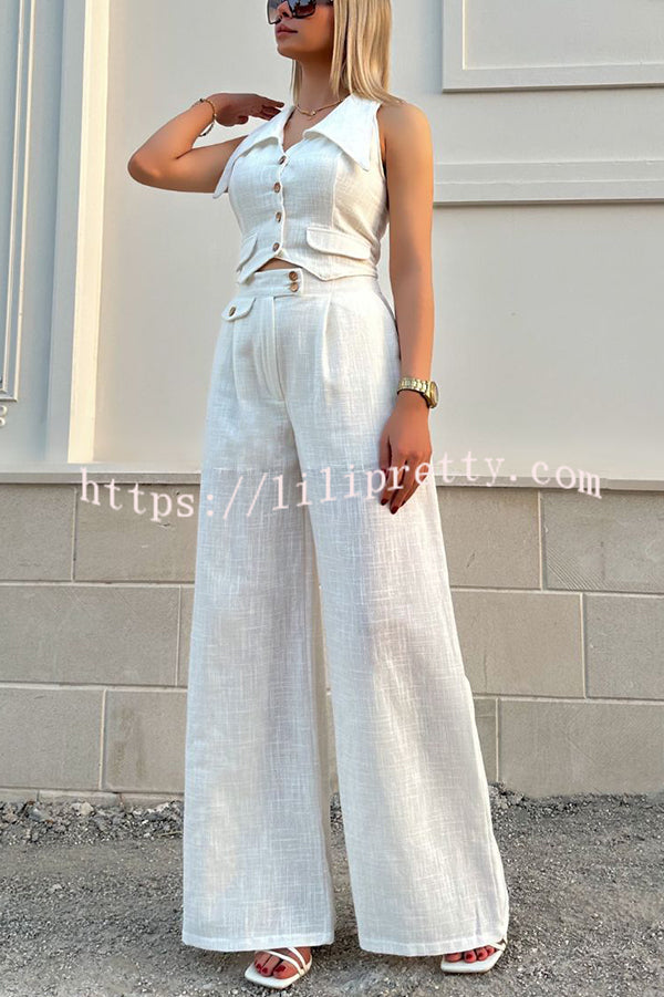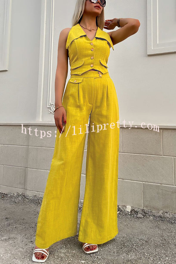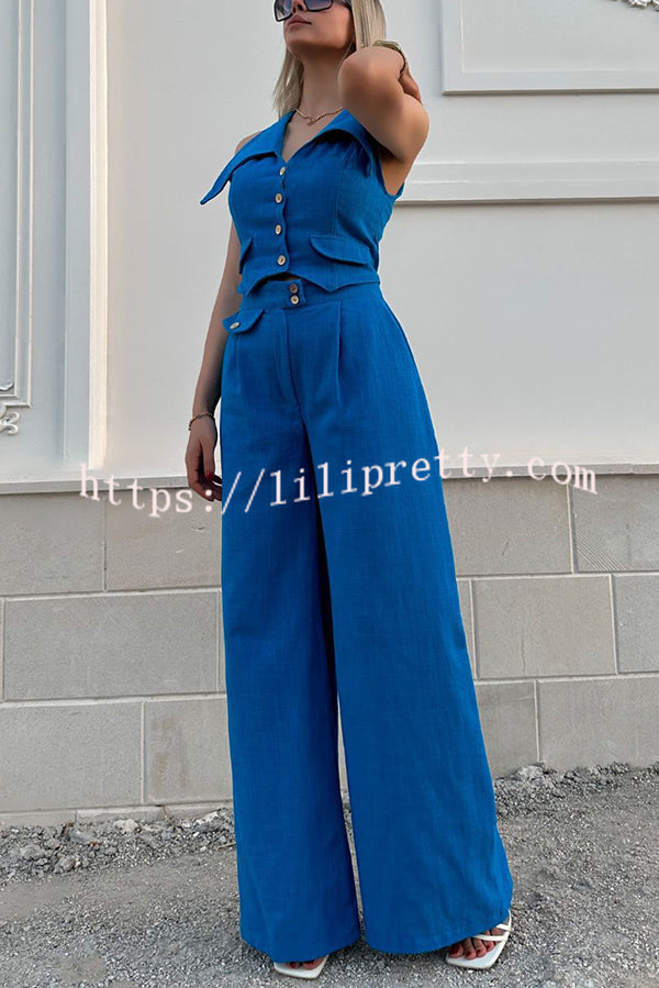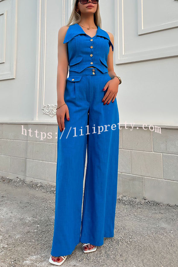 Memorable Crush Linen Blend Patchwork Vest Top and Pocket Wide Leg Pants Set
