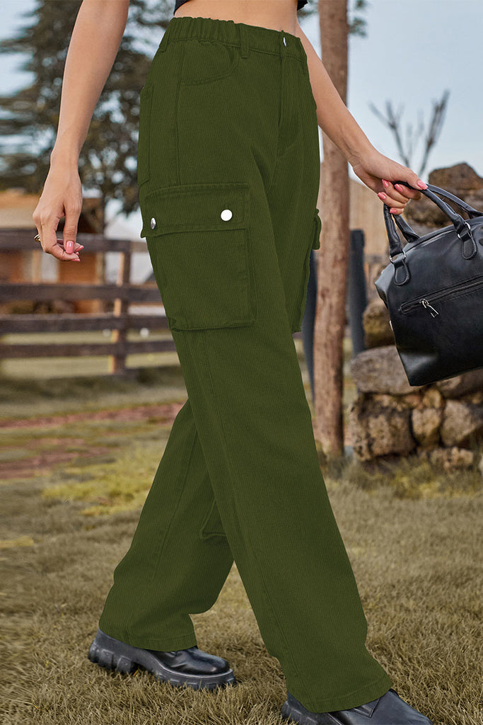 Street Solid Pocket Mid Waist Loose Denim Jeans